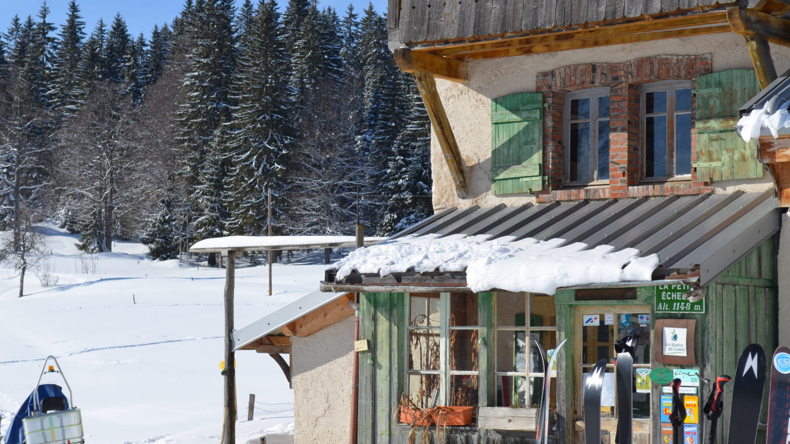 A long morning's skiing works up an appetite. So stop for lunch at the Petite Echelle, a lovely mountain chalet serving food and drinks in the Jura Mountains just a short distance from the Swiss border.