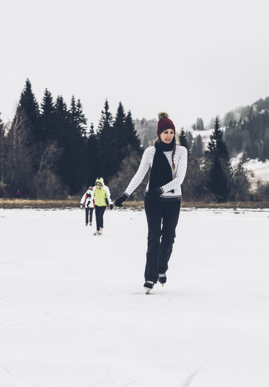 This explains why Lamoura Lake in Les Rousses is often the first to be viable for skating. The ice has to be at least 10cm thick, otherwise beware! Skaters are each responsible for their own safety. Find out beforehand whether the ice is safe, comply with the instructions and never go beyond the designated areas.