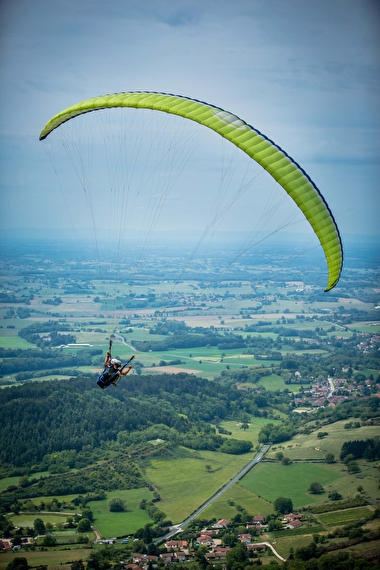 Just 3km away from the Grange du Pin, stop to eat at the restaurant Voyages des Sens, a real gem. You won't be disappointed! Round off your weekend in style by taking to the air. The ideal location and 663-metre elevation of Mont Myon, an almost legendary name here, make it THE paragliding spot of the Revermont region. You'll enjoy a 360° panoramic view which includes the Bresse plain.