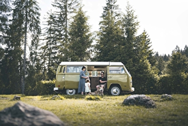 For our little getaway, we chose to hire a van from Vintage Camper, near Haut-Bugey. All we have to do is start the engine... Make sure you've got your seatbelts on!