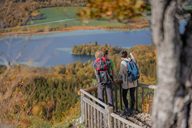 NB: The climb is fairly steep, but well worth the effort.Along the forest path, what a surprise it is when you reach the viewpoints of first the 3 Lakes, then the 4 Lakes. The turquoise lakes of Ilay, Narlay, Petit Maclu and Grand Maclu, bordered by reedbeds, suddenly come into view – and you'll never get tired of the panorama and the everlasting memory this outing leaves you with.